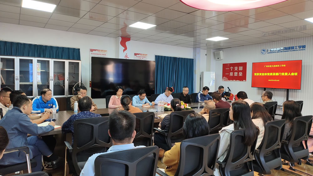 10月24日,广州市蓝天高级技工学校召开党总支全体党员及部门负责人会议,学习贯彻全会精神。党总支书记罗来柏主持会议。 会议指出,党的二十届