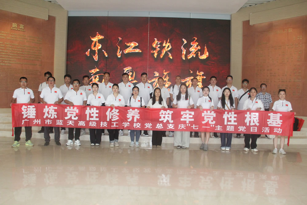 为热烈庆祝中国共产党成立104周年,深入学习贯彻中央八项规定精神,广州市蓝天高级技工学校党总支于“七一”前后组织开展“传承红色基因·践行初心使命”主题系列活动,通过沉浸式红色教育、创新性党课实践、重温入党誓词等形式,引导全体党员赓续红色血脉、勇担时代使命,为学校高质量发展凝聚奋进力量。