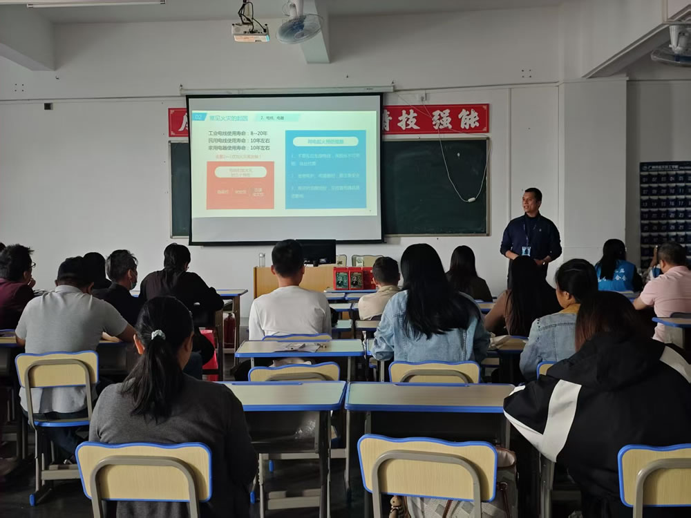 2.剖析火患,知己知彼:彭海师科长结合校园实际,深入浅出地讲解了火灾的分类与特性,并针对教室、宿舍、实训室、食堂等不同场所,分析了常见的火灾隐患和起火原因,警示大家“隐患险于明火”。