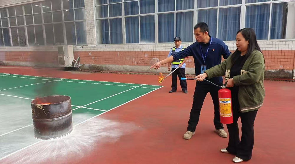 1.灭火器“真火”扑救:在彭海师科长的指导下,师生们轮流上阵,面对熊熊燃烧的火盆,沉着冷静地按照操作步骤,提起灭火器,拔掉保险销,握住喷管,压下压把,对准火焰根部进行喷射。成功将“火灾”扑灭的瞬间,大家不仅掌握了技能,更增强了应对初起火灾的信心。