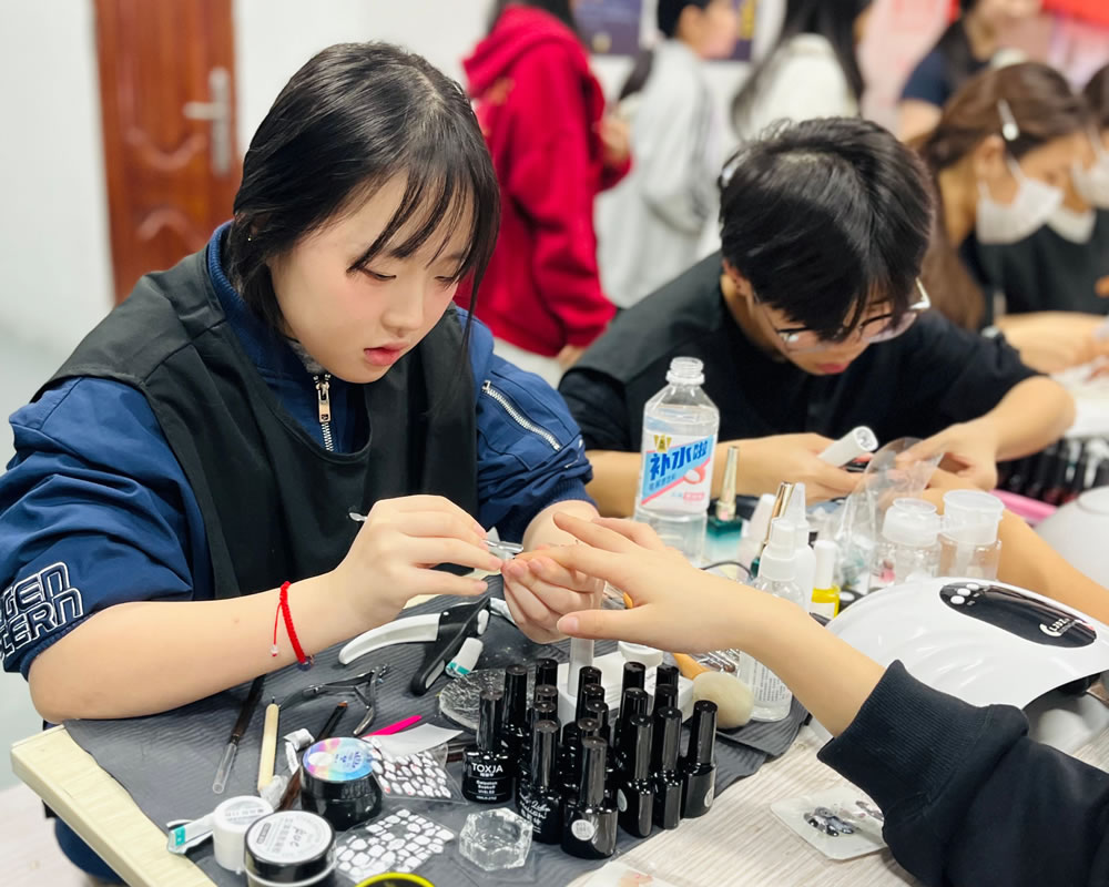 此次美甲体验营在师生们的热烈好评中圆满落幕,既为形象设计专业学子搭建了锤炼技能、展示风采的实战平台,也为校园注入了温馨治愈的文化气息。未来,蓝天高技形象设计专业将继续推出更多兼具实用性与趣味性的实践活动,让专业走出课堂、贴近生活,用专业技能传递美好、治愈心灵!