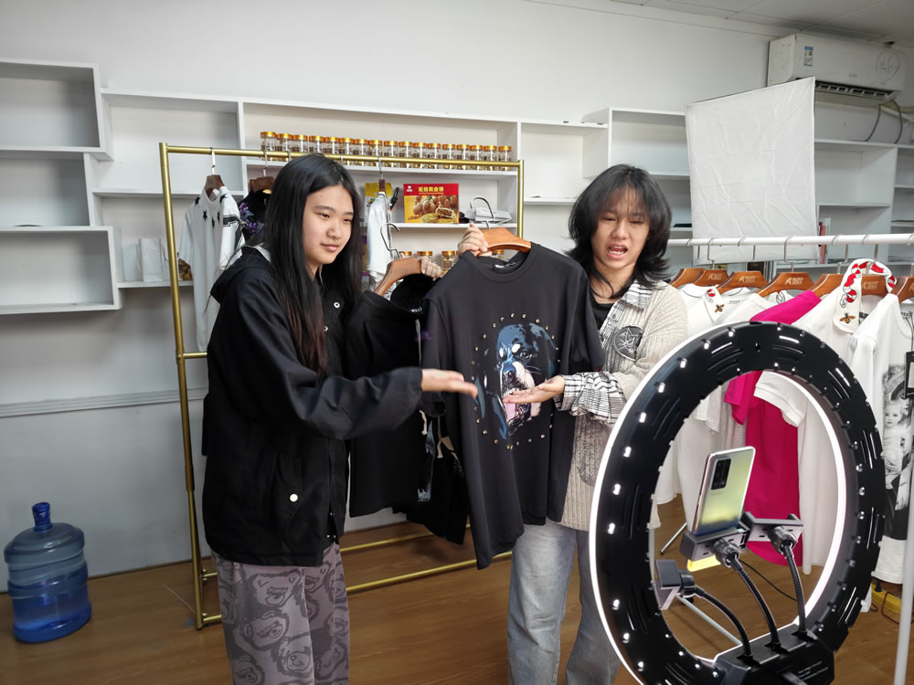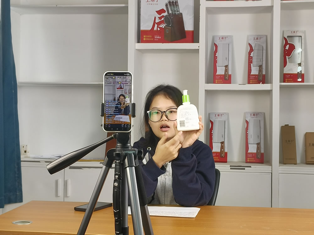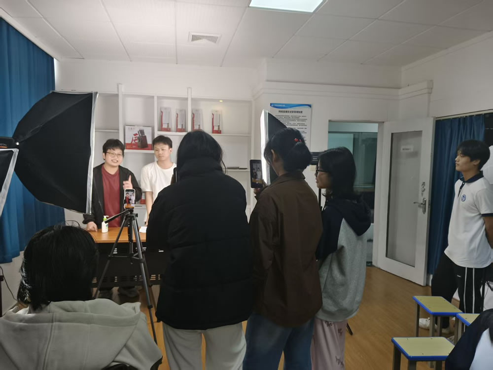 学校与多家电商企业建立稳定合作关系,将企业真实货源引入课堂,让学生直播的每一款商品都有品质保障,互动的每一位粉丝都是真实消费者。实训课堂即全真直播间,学生实训即上岗实战。学生们轮流化身主播、场控、运营,全程复刻真实直播流程。从开场预热时的截屏抽奖规则讲解,到品牌优势的详细介绍、主推商品的直观展示,再到热销返场时的物流售后答疑,每个环节都严格对标行业规范,合理把控商品推荐时长,实时回应粉丝弹幕提问,精准引导下单转化。这些写在直播流程表里的硬性要求,也成为了学生们的实操考核时的要点。2024级新媒体运营专业高技班袁梓淇同学分享道:“上次我们小组策划的618服饰专场直播氛围特别热烈,我们精心设计互动环节、打磨服饰讲解逻辑,还实时根据粉丝对款式、尺码的反馈调整沟通节奏,这次实战让我特别有成就感!”