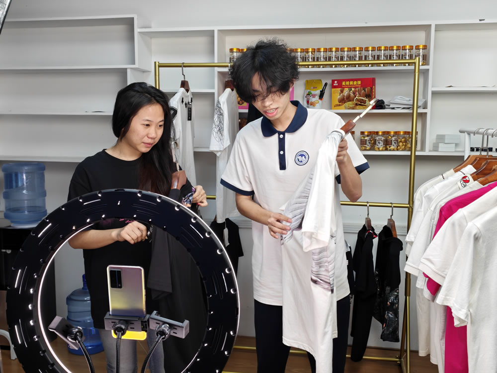 “3、2、1,上链接!这款夏季运动套装透气吸汗又百搭,运动通勤都适合,直播间专属价 199 元,加 100 元再带一套回家!” 走进广州市蓝天高级技工学校的电商直播实训基地,直播间里传来清脆有力的带货声。这不是专业主播的商业直播,而是新媒体运营专业学生们的《直播营销》实训课堂。课程教学以工学一体化为核心,将企业真实直播流程和岗位标准融入课程设计,让学生在学中做、做中学,练就直播营销硬技能。