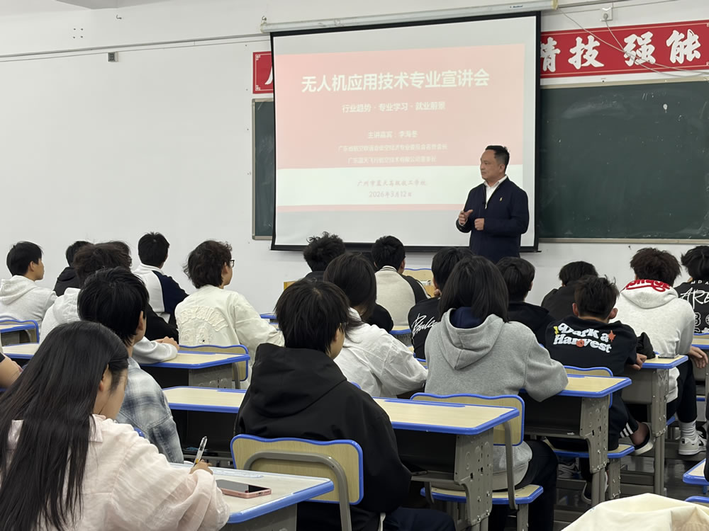 此次专题宣讲活动,既是一堂专业成长课,也是一堂就业指导课,精准对接无人机行业发展趋势,帮助学生提前了解专业前景、明确学习方向、激发学习热情。下一步,学校将持续深化产教融合,以产业需求为导向,不断优化人才培养模式,全力培养高素质、高技能的无人机专业人才,助力学生在低空经济时代走好技能成长每一步。
