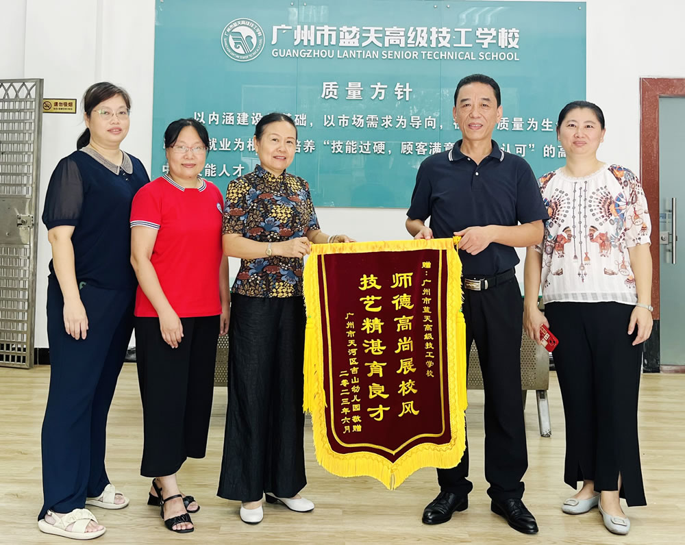 广州市蓝天高级技工学校校长魏跃进表示,学校非常感谢吉山幼儿园能给学生们提供这次非常难得的实践机会,让我们的学生有机会参与这一项有意义的公益活动。这面锦旗既是对学生们辛勤付出的肯定和鼓励,也是对我校技能人才培养工作的认可。今后,学校将继续努力,推进教育与公益事业不断向前发展,为社会做出更大的贡献。