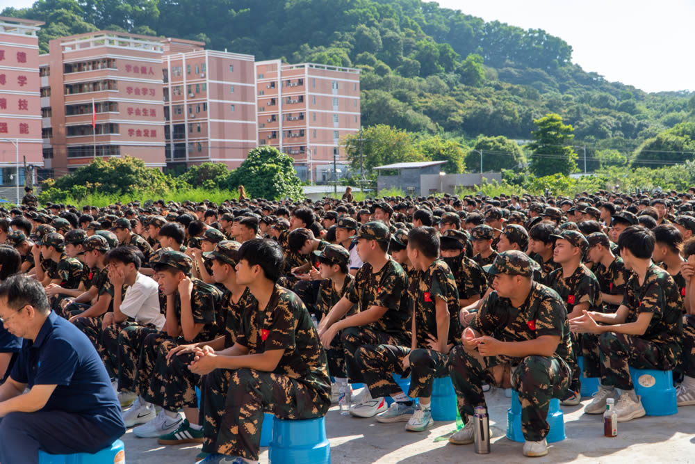 伴着庄严的国歌声,典礼正式启幕。学生处黄宗华处长首先作素质拓展训练总结。他指出,全体新生以顽强意志完成训练,内务整理水平显著提升,拓展一连等连队表现突出。特别表彰了形象设计中技2班黄嘉莉和新能源汽车检测与维修中技2班廖朝阳两位同学。黄嘉莉同学的乐观向上和感染力,廖朝阳同学的守时守信和坚韧不拔,为所有新学子树立了榜样。黄处长寄语新生:“五天的汗水是人生的序章,愿大家以更饱满的热情投入新征程!”