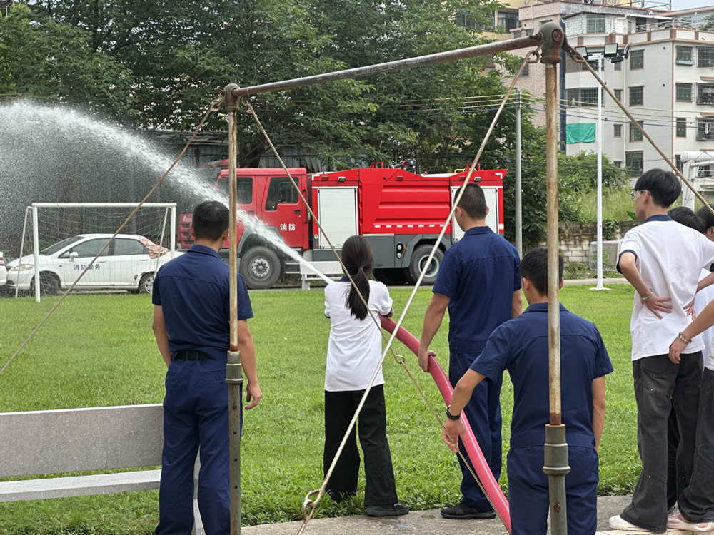 在消防员指导下,师生们轮流体验液压破拆工具,另有同学穿上防火服、救援服、防化服等装备,有的同学使用高压水枪进行灭火,真实体验让安全知识深入人心。