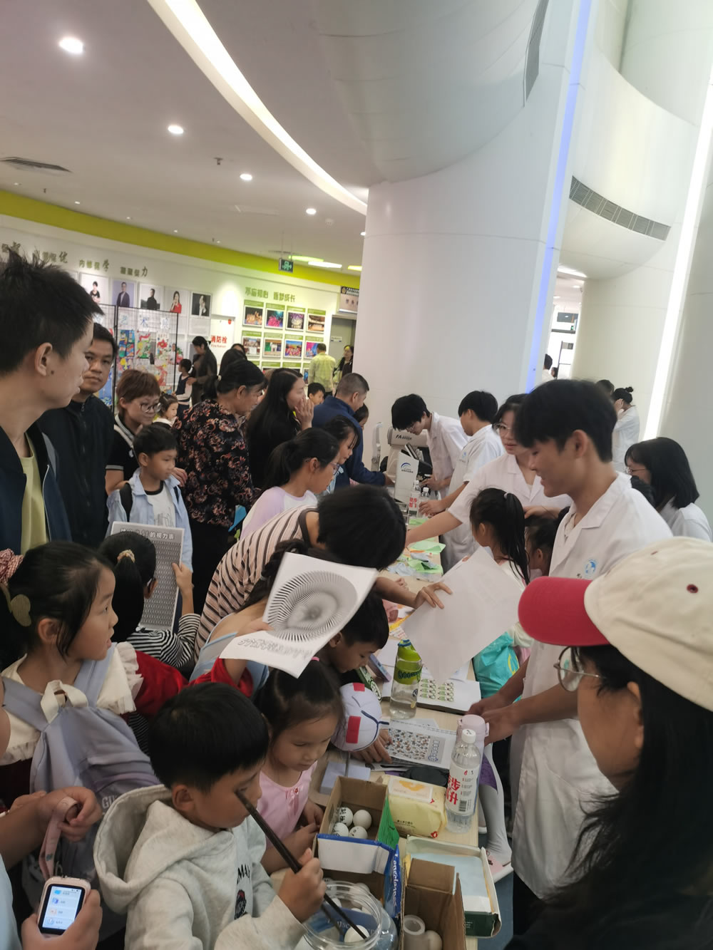 最让孩子们挪不开脚的,要数爱眼护眼科普游戏区!“夹乒乓球”“看图来找茬“眼球知识小课堂”等趣味活动,将爱眼护眼知识、近视成因等知识转化为生动的游戏体验。学生志愿者们化身 “护眼小老师”,点开模拟动画给大家看“长时间刷手机,眼睛会有多累”,还编了朗朗上口的口诀:“一拳一尺加一寸,读写姿势要记准!”现场笑声、抢答声不停,孩子们玩得不亦乐乎,科学护眼的种子也在心里发了芽。